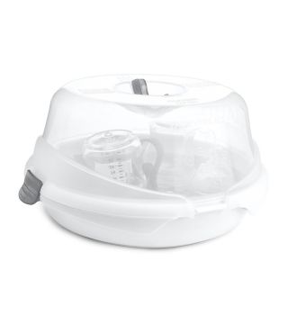 - Lightweight, compact microwave baby bottle sterilizer with heat-resistant handles.